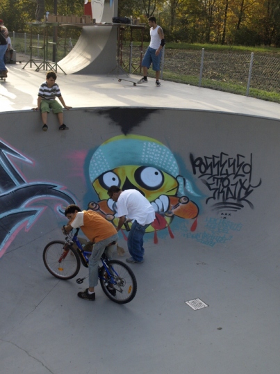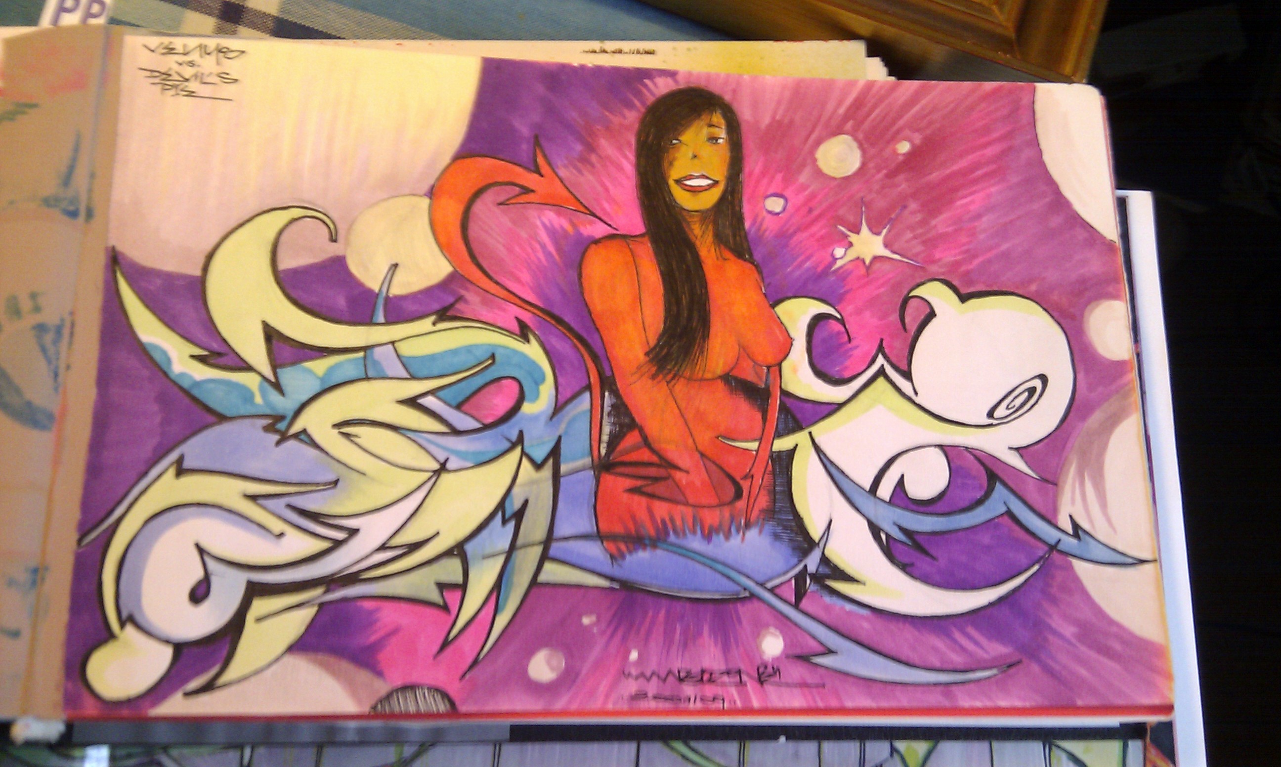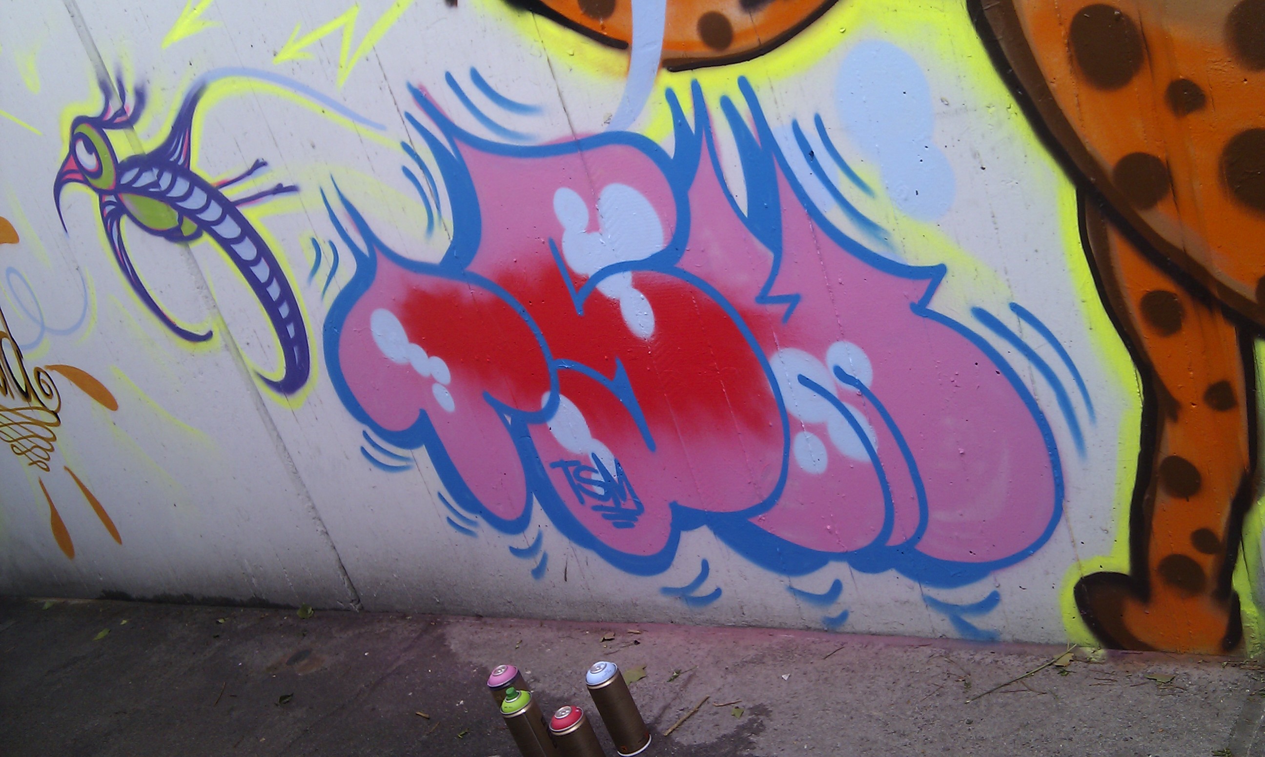 Mit Marker, Federn und Bleistifte verbringe ich momentan am meisten Zeit. Ausserdem mit Stickers und manchmal mache ich auch mal ein Tag im Vorbeigehn. Ich gab einige Workshops für Kids, in denen wir gemeinsam malten. Hardcore-Actions überlasse ich anderen und ziehe meinen Hut vor ihnen!