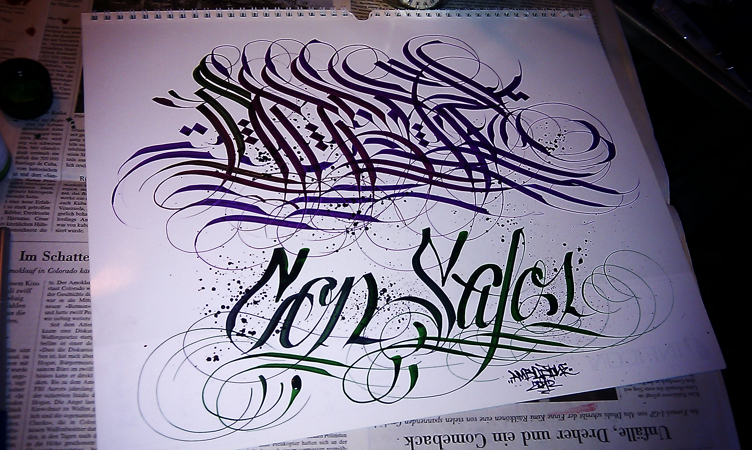 Bis heute interessiere ich mich sehr für Handstyles. Die Essenz von Graff liegt meiner Meinung nach im Tag. Daher interessiere ich mich auch für traditionelle Kalligrafie bzw. Writer aus aller Welt. In den Staaten gelten Handstyles auf Stickern schon seit jeher als legitimes mittel um “up”‘ zu sein.